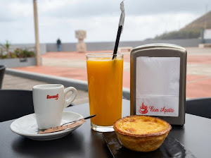 ☕ Pausa perfeita no Restaurante Praia da Alagoa, em Porto da Cruz. Um café aromático acompanhado de um pastel doce e um sumo natural refrescante, ide…